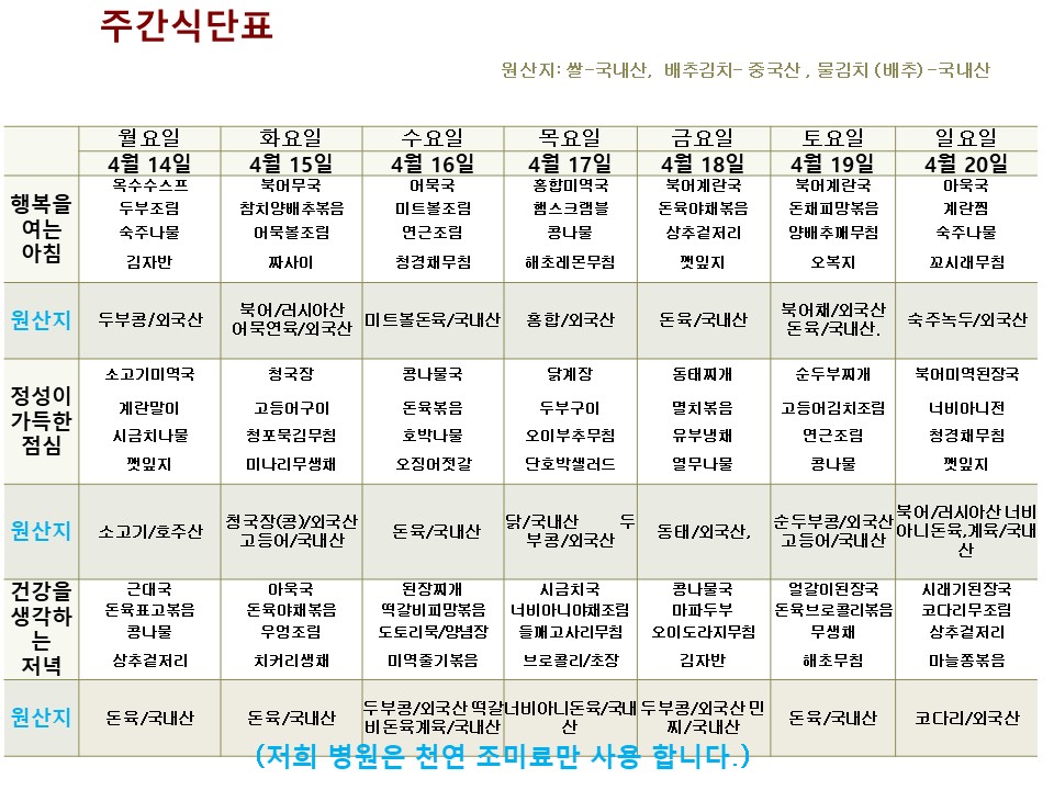 | 610 | 2025년 10월 13일 ~ 2025년 10월 19일 식단표 | 효성요양병원 | 2025-10-13 |