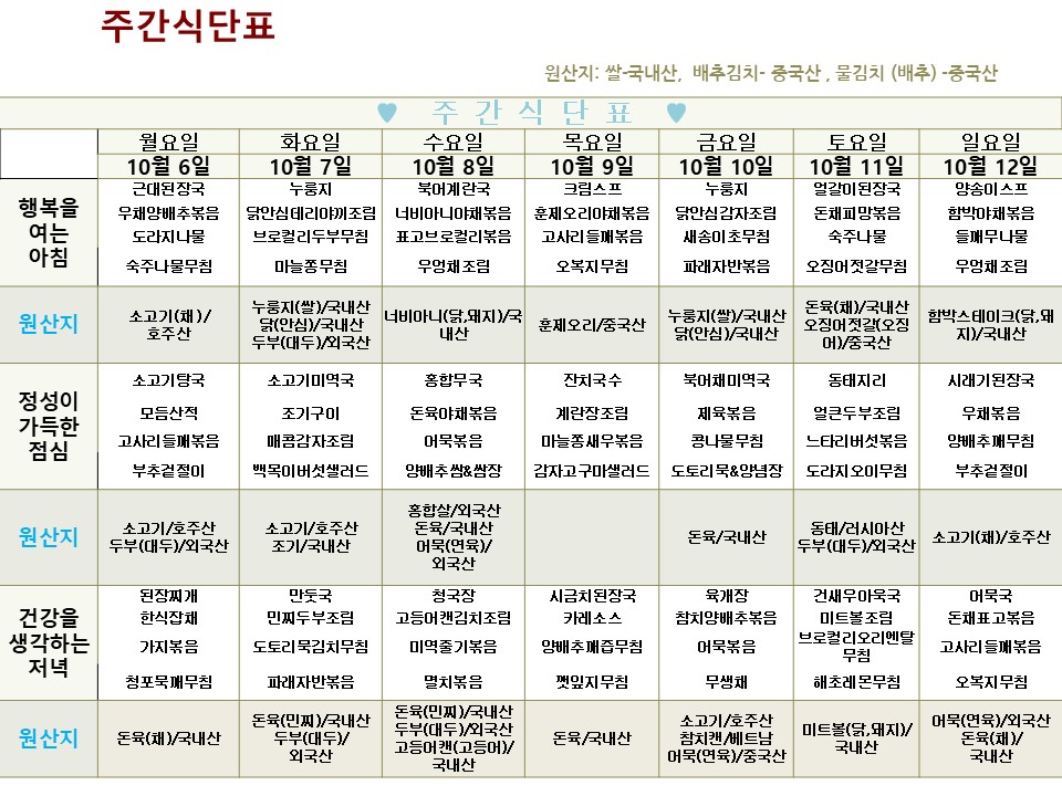 → | 2025년 10월 6일 ~ 2025년 10월 12일 식단표 | 효성요양병원 | 2025-10-06 |