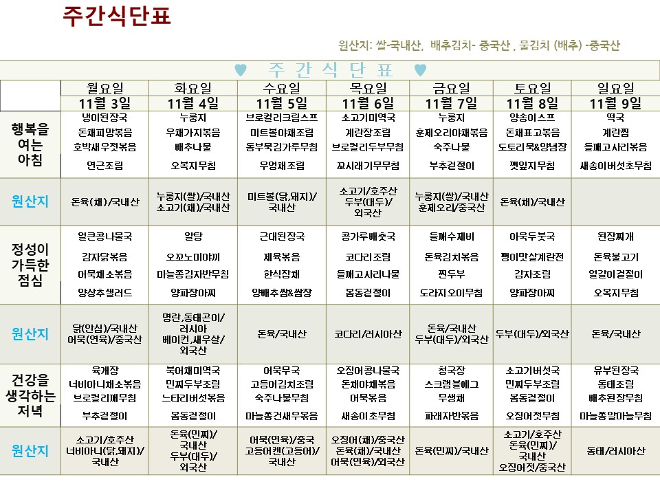 | → | 2025년 11월 3일 ~ 2025년 11월 9일 식단표 | 효성요양병원 | 2025-11-03 |
