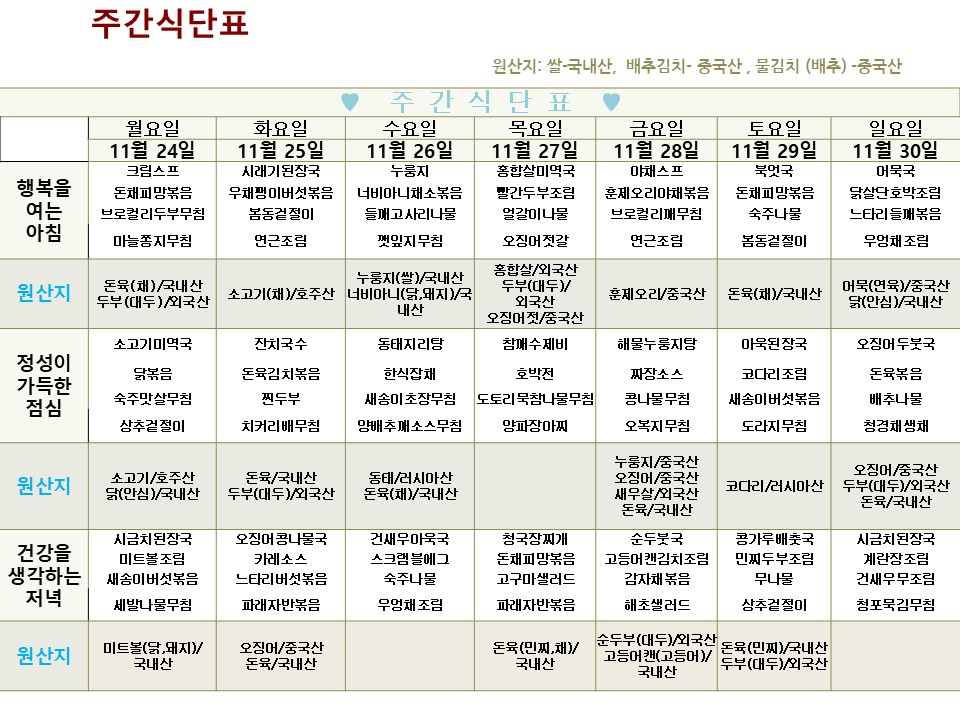 | → | 2025년 11월 24일 ~ 2025년 11월 30일 식단표 | 효성요양병원 | 2025-11-24 |