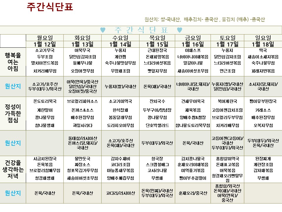 | → | 2026년 1월 12일 ~ 2026년 1월 18일 식단표 | 효성요양병원 | 2026-01-12 |