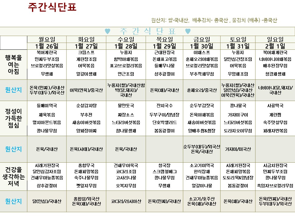 | → | 2026년 1월 26일 ~ 2026년 2월 1일 식단표 | 효성요양병원 | 2026-01-26 |