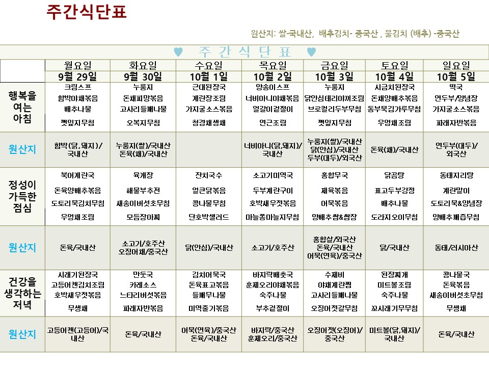 → | 2025년 9월 29일 ~ 2025년 10월 5일 식단표 | 효성요양병원 | 2025-09-29 |