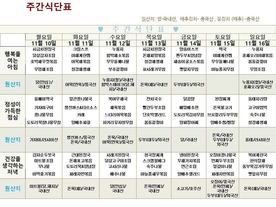 | → | 2025년 11월 10일 ~ 2025년 11월 16일 식단표 | 효성요양병원 | 2025-11-10 |