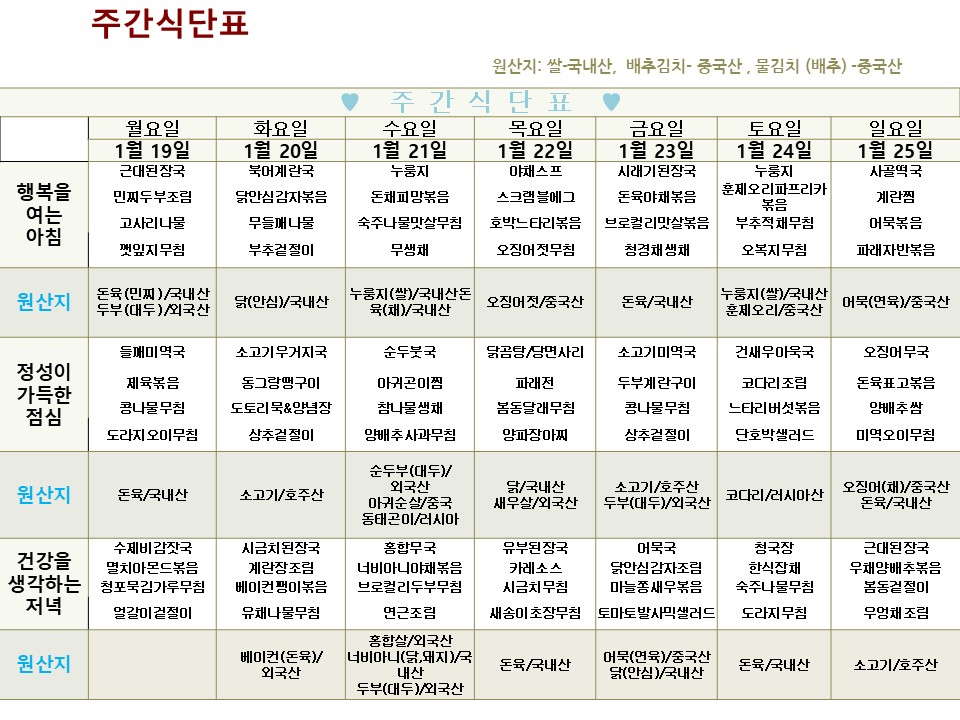 | → | 2026년 1월 19일 ~ 2026년 1월 25일 식단표 | 효성요양병원 | 2026-01-19 |