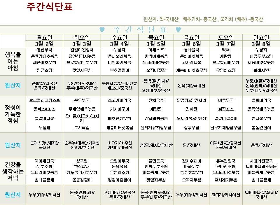 | → | 2026년 3월 2일 ~ 2026년 3월 8일 식단표 | 효성요양병원 | 2026-03-03 |