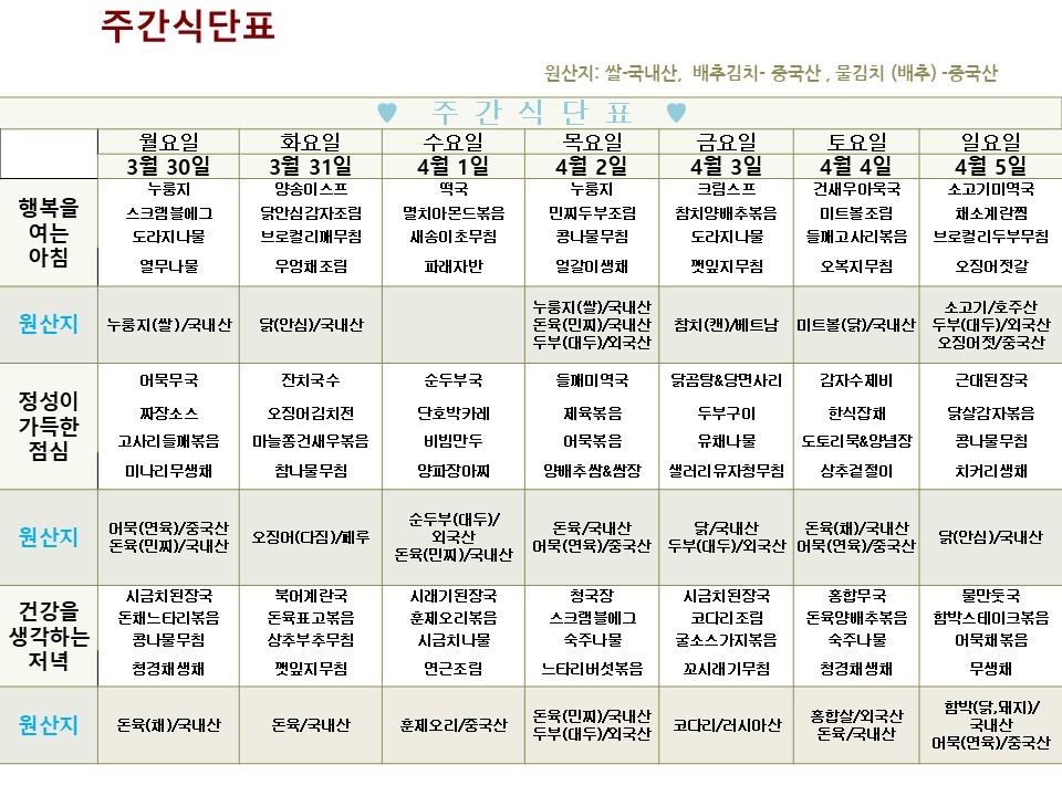 | → | 2026년 3월 30일~ 2026년 4월 5일 식단표 | 효성요양병원 | 2026-03-30 |