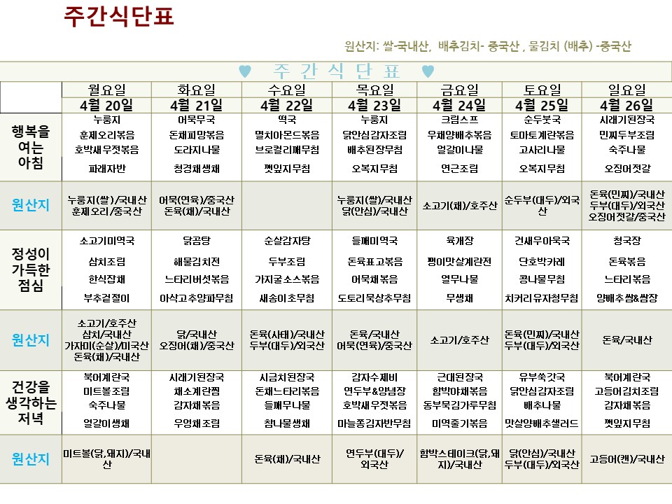 | → | 2026년 4월 20일 ~ 2026년 4월 26일 식단표 | 효성요양병원 | 2026-04-20 |